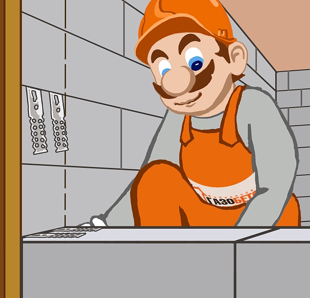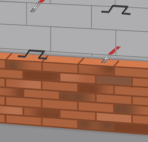 78. Крепление гибких связей в тело газобетонного блока производится анкерным элементом на глубину не менее 80 мм, крепление в кирпичную кладку - утапливанием связи в слой цементно-песчаного раствора.