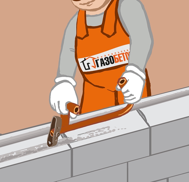 19. После завершения очередного ряда блоков поверхность выравнивается с помощью рубанка для газобетона (см. инструбенты). Перепады между соседними блоками не допускаются.