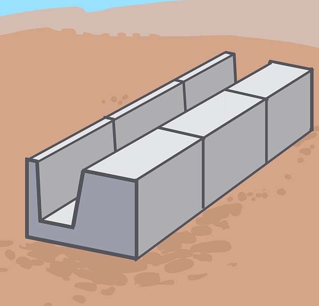 6. Ленточный монолитный армированный фундамент является наиболее распространенным. Глубина заложения, количество стержней арматуры и ее сечение определяют проектом. Рекомендуется применять стальную арматуру.
