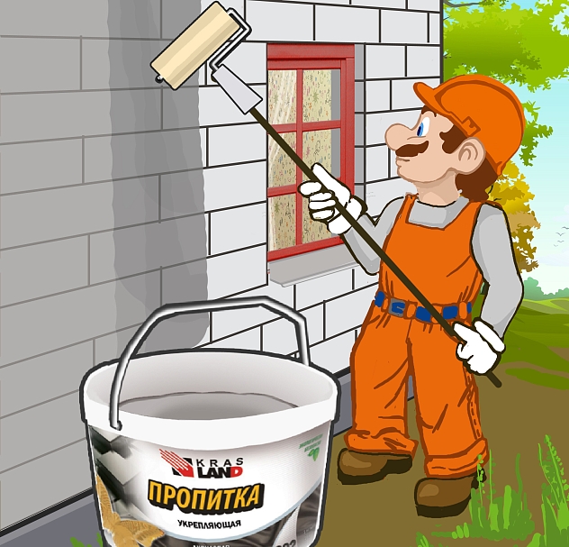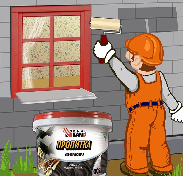 69. Обработать поверхность укрепляющей пропиткой для внутренних и наружных работ Krasland G02 с увеличенным содержанием дисперсии, и дать просохнуть