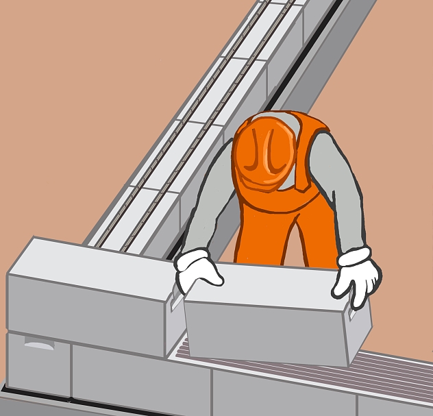 15. При использовании блока с системой паз-гребень тычок промазывается по 5 см слева и справа от паз-гребня. Паз-гребень и захват для рук клеем не промазываются.