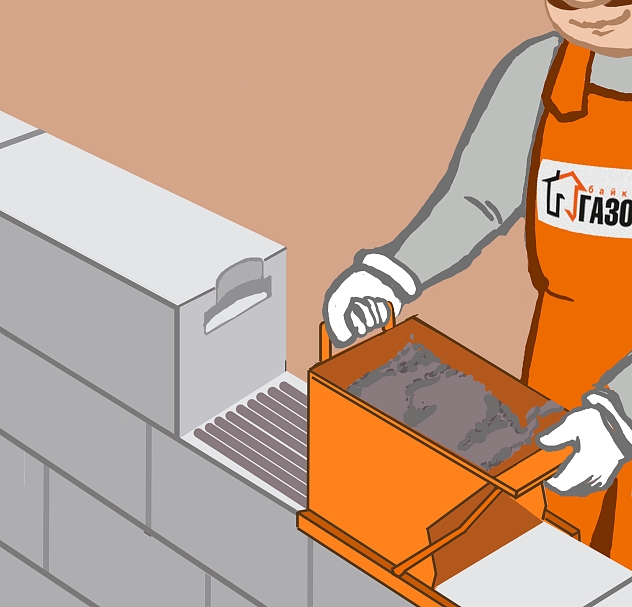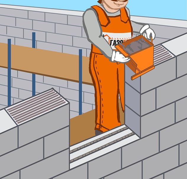 29. На торцевую сторону U-образных блоков наносится клей для газобетона