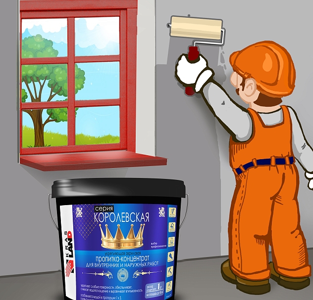 61. После высыхания шпатлевки нанести на поверхность грунтовку Krasland 302 c увеличенным содержанием дисперсии