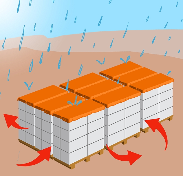 1. На время строительства и хранения рекомендуется размещать поддоны на ровной проветриваемой площадке. Штабелировать не более 2 поддонов по высоте. В ненарушенной заводской упаковке, либо накрыть сверху от излишнего намокания.