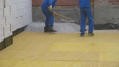 9. Вокруг жилого дома рекомендуется устраивать теплую отмостку. Для этого применяется Пеноплэкс 50 мм.
