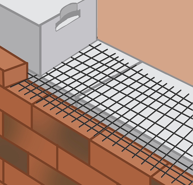 77. Для связи с несущей стены из газобетона и облицовочной кирпичной кладки можно применить кладочную базальтовую сетку. Сетка применяется на стадии кладки.
