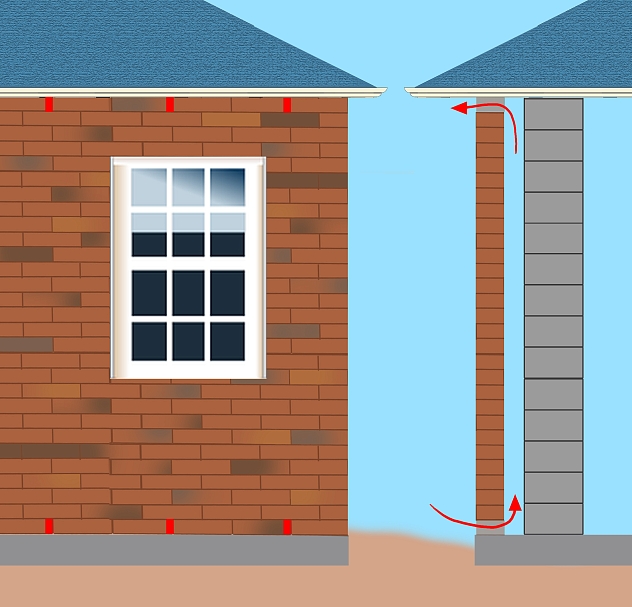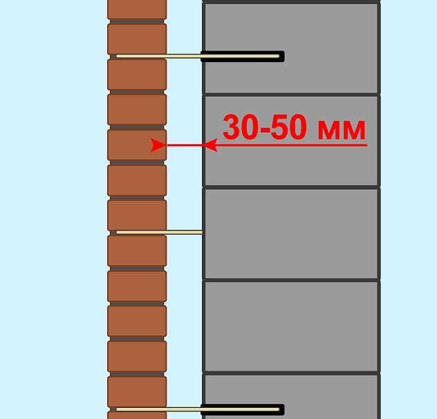 76. Гибкие связи обеспечивают создание вентирируемого зазора в 30-50 мм между несущей стеной из газобетона и облицовкой из кирпича.