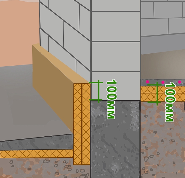 7. При устройстве "полов-по-грунту" необходимо замкнуть теплый контур (Пеноплэкс, минимум 2 слоя по 50 мм) под стяжкой "теплого пола"