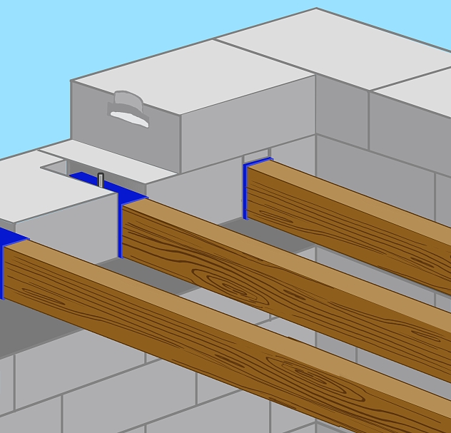 44. при устройстве деревянных перекрытий, балки перекрытий должны опираться на антисейсмический (армированный) монолитный пояс из U-образных блоков.