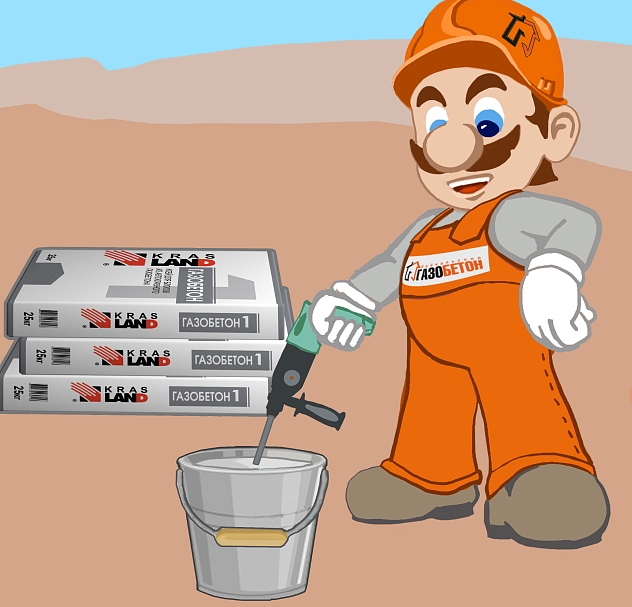 10. Для приготовления клея в ведро с отмеренным количеством воды, при постоянном перемешивании дрелью, с миксером (см. инструменты), постепенно добавляется клей Krasland ГАЗОБЕТОН-1. В ходе работы сухую смесь периодически перемешивают для поддержания однородной консистенции раствора.